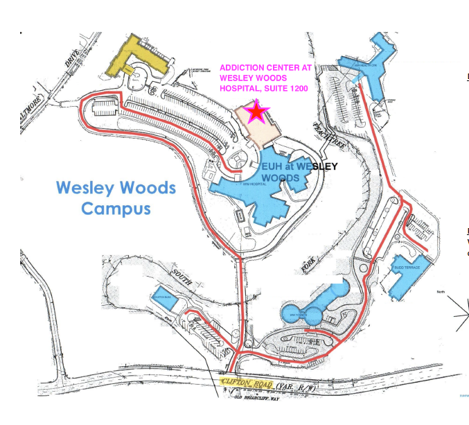 - From Clifton Road, turn onto Towers Circle, NE to enter the Wesley Woods Campus